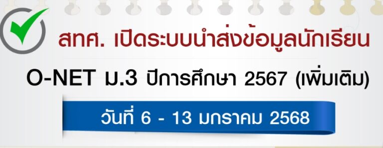 สทศ.เปิดระบบนำส่งข้อมูลนักเรียนเข้ารับการทดสอบ O-NET ม.3 เพิ่มเติม