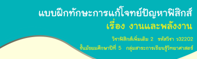แบบฝึกทักษะการแก้โจทย์ปัญหาฟิสิกส์ เรื่อง งานและพลังงาน วิชาฟิสิกส์เพิ่มเติม 2 รหัสวิชา ว32202 ชั้นมัธยมศึกษาปีที่ 5 กลุ่มสาระการเรียนรู้วิทยาศาสตร์ โรงเรียนสาหร่ายวิทยาคม