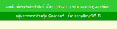 แบบฝึกทักษะคณิตศาสตร์ เรื่อง การบวก การลบ และการคูณทศนิยม กลุ่มสาระการเรียนรู้คณิตศาสตร์ ชั้นประถมศึกษาปีที่ 5