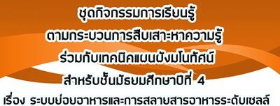 ชุดกิจกรรมการเรียนรู้ตามกระบวนการสืบเสาะหาความรู้ร่วมกับเทคนิคแผนผังมโนทัศน์ สำหรับชั้นมัธยมศึกษาปีที่ 4 เรื่องระบบย่อยอาหารและการสลายสารอาหารระดับเซลล์