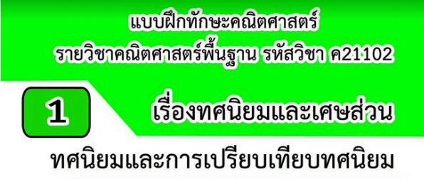 แบบฝึกทักษะคณิตศาสตร์ รายวิชาคณิตศาสตร์พื้นฐาน รหัสวิชา ค21102 เรื่องทศนิยมและเศษส่วน