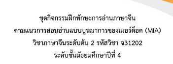 ชุดกิจกรรมฝึกทักษะการอ่านภาษาจีนตามแนวการสอนอ่านแบบบูรณาการของเมอร์ด็อค(MIA) วิชาภาษาจีนระดับต้น 2 รหัสวิชา จ31202ระดับชั้นมัธยมศึกษาปีที่4