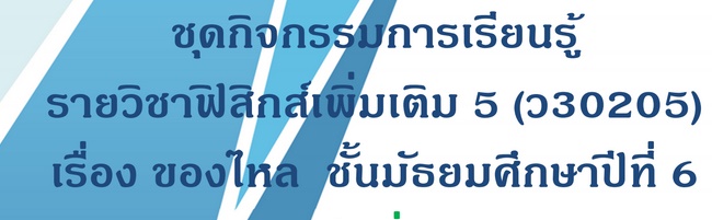 ชุดกิจกรรมการเรียนรู้ รายวิชาฟิสิกส์เพิ่มเติม 5 (ว30205) เรื่องของไหล ชั้นมัธยมศึกษาปีที่ 6