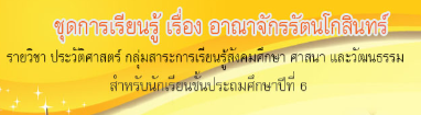 การพัฒนาชุดการเรียนรู้วิชาประวัติศาสตร์ เรื่อง อาณาจักรรัตนโกสินทร์ กลุ่มสาระการเรียนรู้สังคมศึกษา ศาสนา และวัฒนธรรม สำหรับนักเรียนชั้นประถมศึกษาปีที่ 6