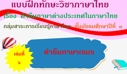 แบบฝึกทักษะวิชาภาษาไทย เรื่อง คำยืมภาษาต่างประเทศในภาษาไทย เล่มที่ 6 คำยืมภาษาเขมร กลุ่มสาระการเรียนรู้ภาษาไทย ชั้นมัธยมศึกษาปีที่ 3