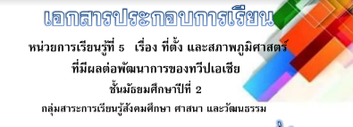 รายงานผลการสร้าง และการใช้เอกสารประกอบการเรียน วิชาประวัติศาสตร์ เรื่อง ที่ตั้ง และสภาพภูมิศาสตร์ที่มีผลต่อพัฒนาการของทวีปเอเชีย ชั้นมัธยมศึกษาปีที่ 2 กลุ่มสาระการเรียนรู้สังคมศึกษา ศาสนา และวัฒนธรรม โรงเรียนบ้านสุขฤทัย