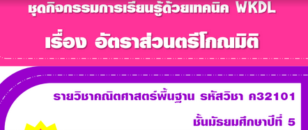 ชุดกิจกรรมการเรียนรู้ด้วยเทคนิค KWDL เรื่องอัตราส่วนตรีโกณมิติ รายวิชาคณิตศาสตร์พื้นฐาน รหัสวิชา ค32101 สำหรับนักเรียนชั้นมัธยมศึกษาปีที่ 5