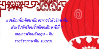 แบบฝึกเพื่อพัฒนาทักษะการจำตัวอักษรจีน สำหรับนักเรียนชั้นมัธยมศึกษาปีที่ 4 แผนการเรียนอังกฤษ – จีน รายวิชาภาษาจีน จ30201