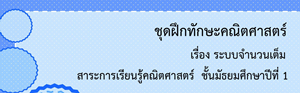 ผลของการใช้แบบฝึกทักษะ ที่มีผลต่อผลสัมฤทธิ์ทางการเรียนรู้คณิตศาสตร์ เรื่อง ระบบจำนวนเต็ม กลุ่มสาระการเรียนรู้คณิตศาสตร์ สำหรับนักเรียนชั้นมัธยมศึกษาปีที่ 1