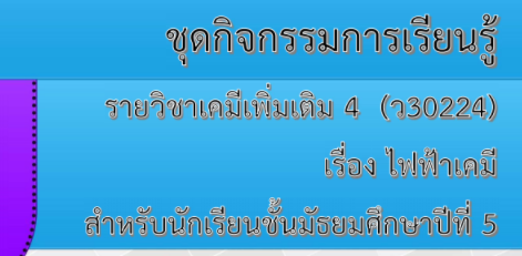ชุดกิจกรรมการเรียนรู้ รายวิชาเคมีเพิ่มเติม 4 (ว30224) เรื่อง ไฟฟ้าเคมี สำหรับนักเรียนชั้นมัธยมศึกษาปีที่ 5