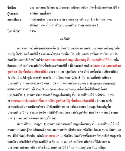 รายงานผลการใช้เอกสารประกอบการเรียนลูกเสือสามัญ ชั้น ประถมศึกษาปีที่5