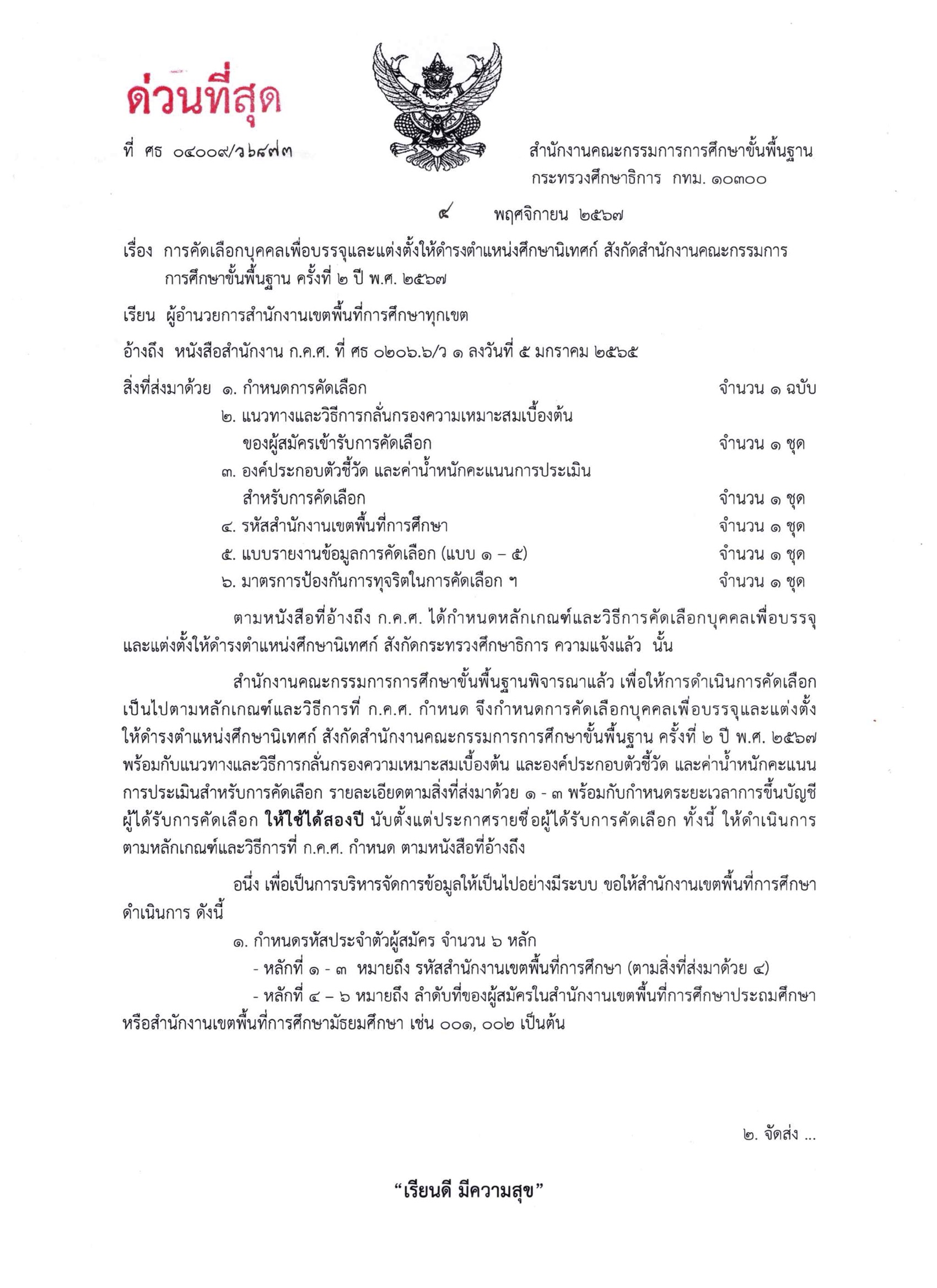 การคัดเลือกบุคคลเพื่อบรรจุและแต่งตั้งให้ดำรงตำแหน่งศึกษานิเทศก์ สังกัดสำนักงานคณะกรรมการการศึกษาขั้นพื้นฐาน ครั้งที่ 2 ปี พ.ศ. 2567 ข่าวการศึกษา ข่าววันนี้ 05 พ.ย. 2024 59 share tweet share KRUPUNMAI SHARE Rate this post KRUPUNMAI SHARE